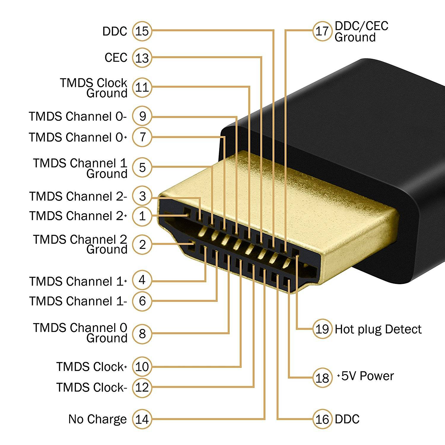 標準HDMI接口公頭引腳序號與定義圖解