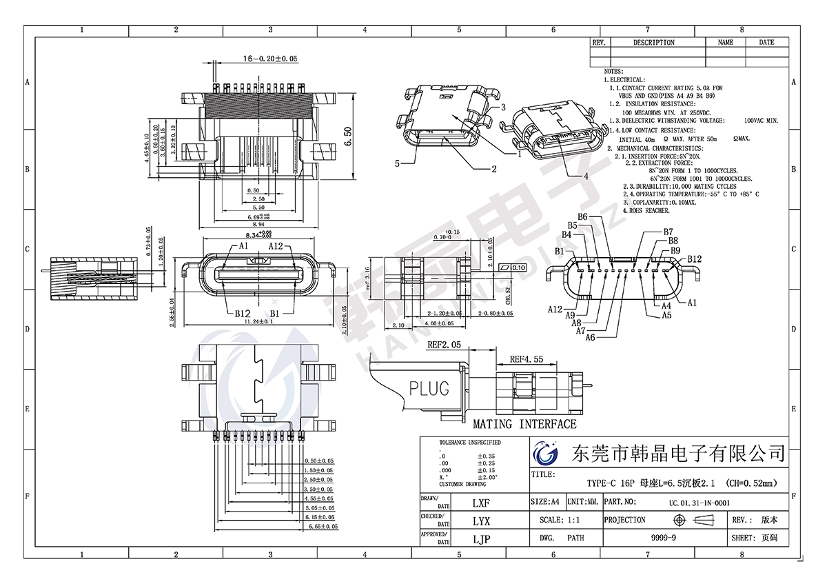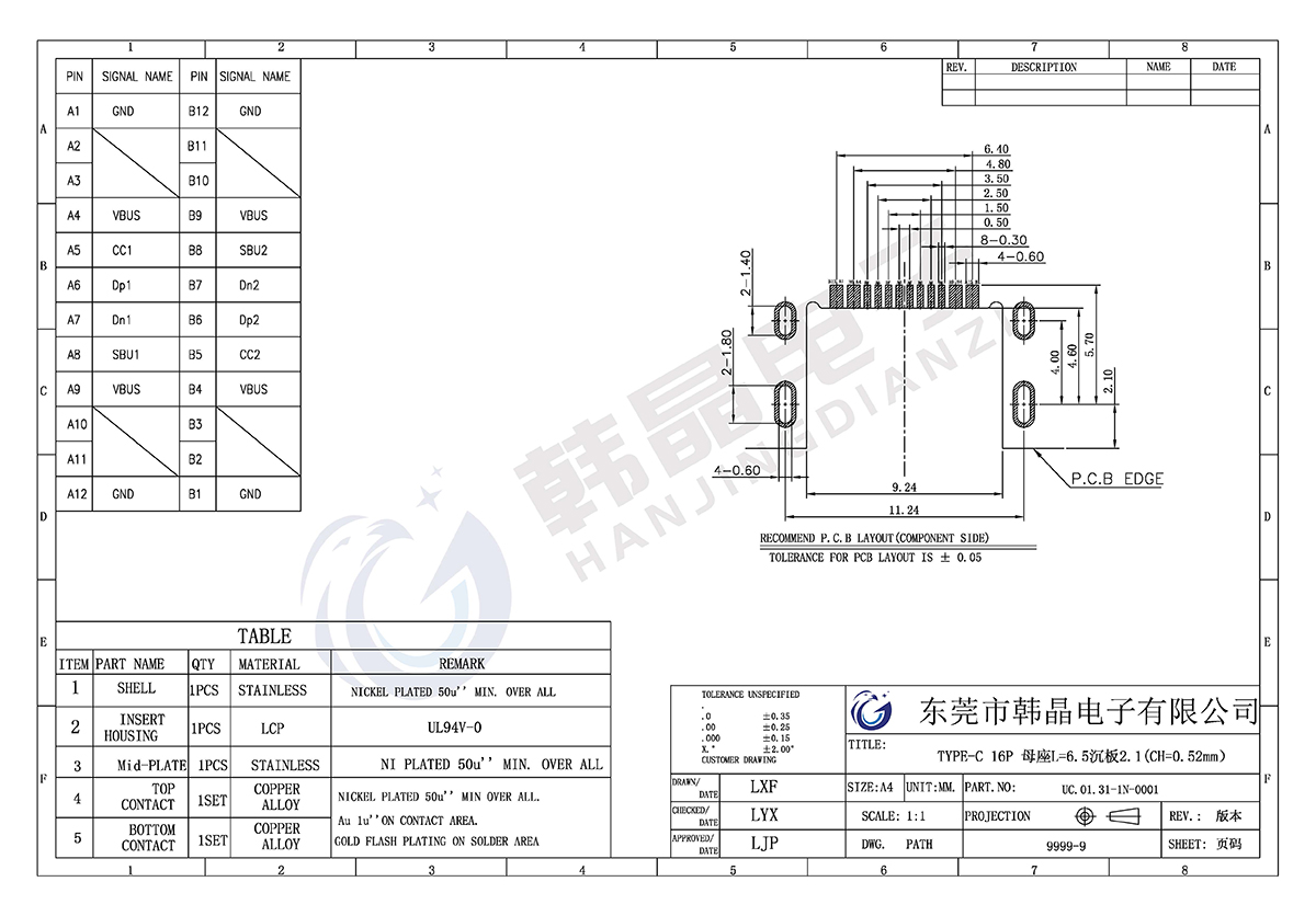 絕緣體材料: LCP,UL94V-0;COL0R;BLACK