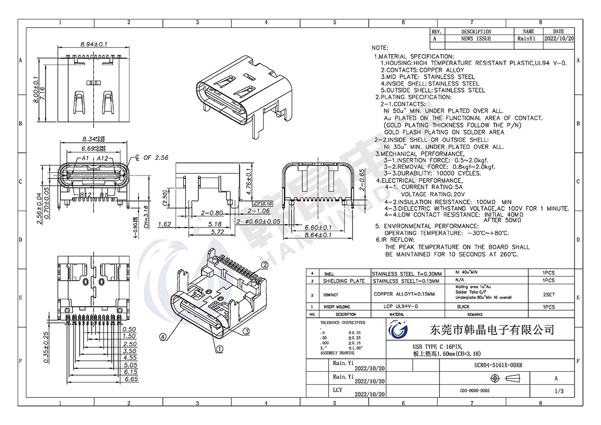 絕緣體材料: LCP,UL94V-0;COL0R;BLACK