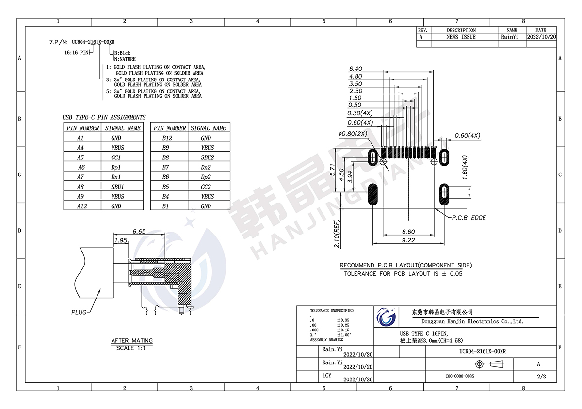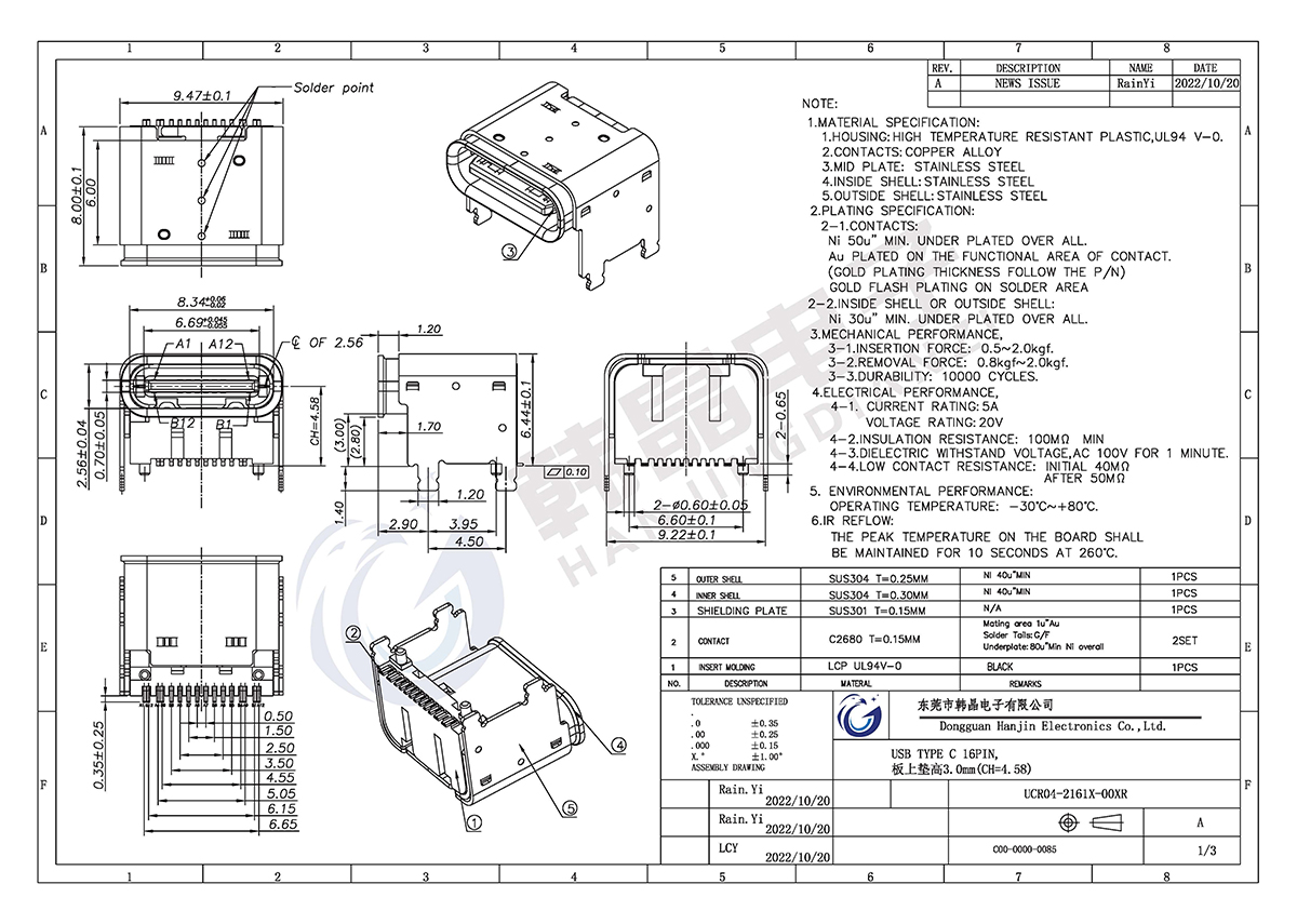 絕緣體材料: LCP,UL94V-0;COL0R;BLACK