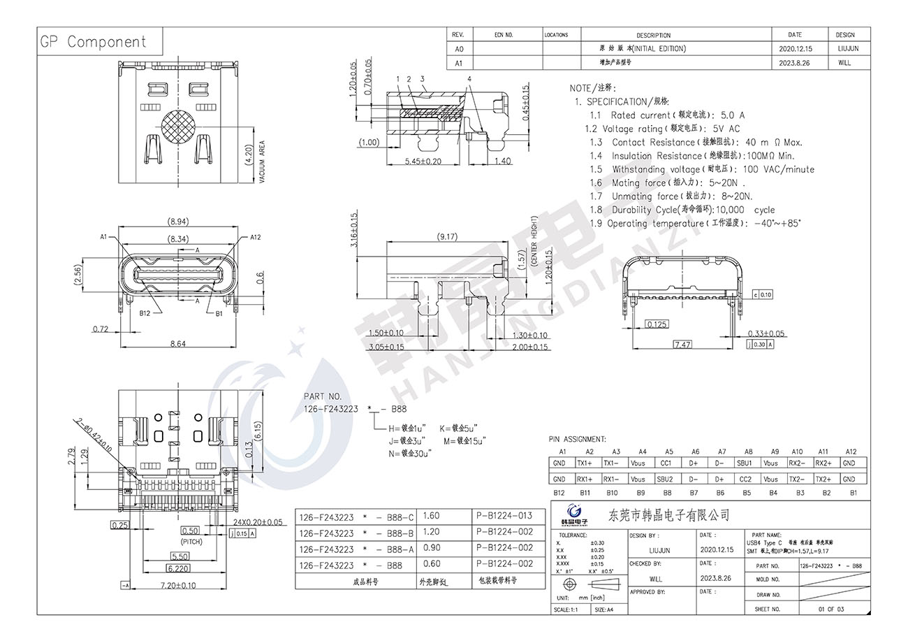 • 所屬分類:TYPE-C24P 臥式貼片系列