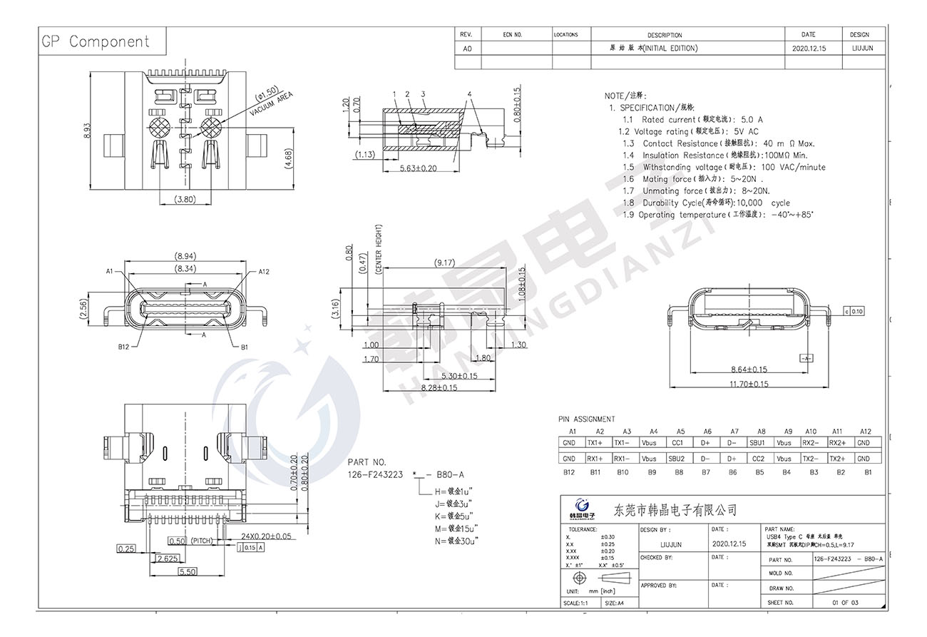 • 所屬分類:TYPE-C24P 臥式貼片系列