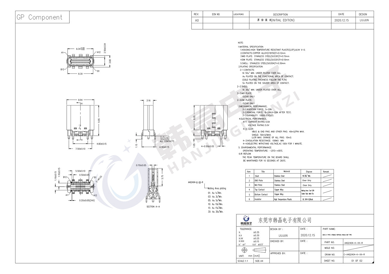 • 所屬分類:TYPE-C24P 立式貼片系列