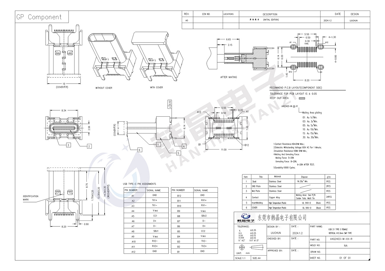 絕緣體材料: PA9T, ul94 v-0