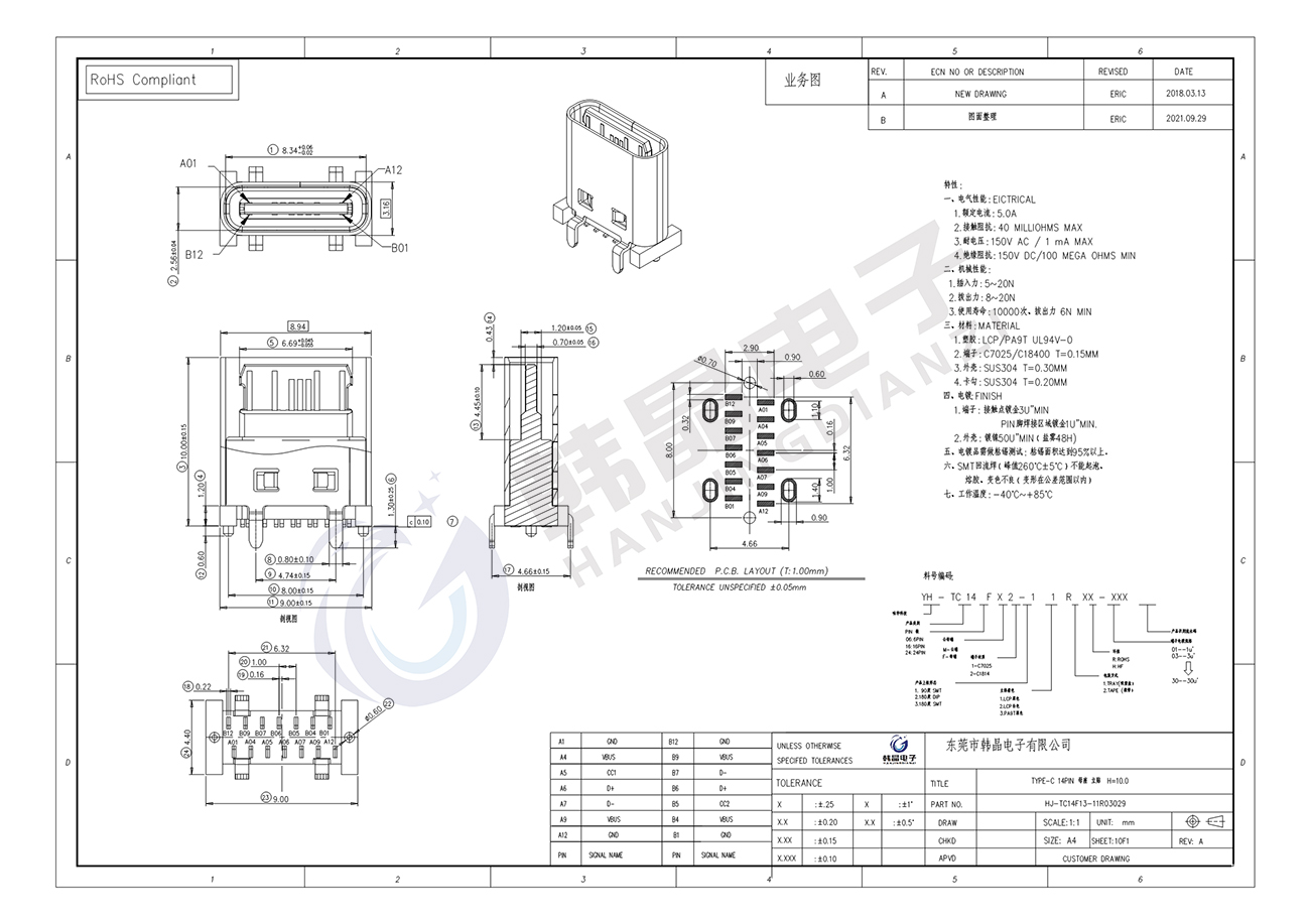 絕緣體材料: LCP, PA9T UL94 v-0